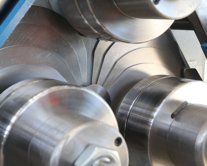 Profiling and radiusing half pipe from flat strip, stainless and carbon steel.
